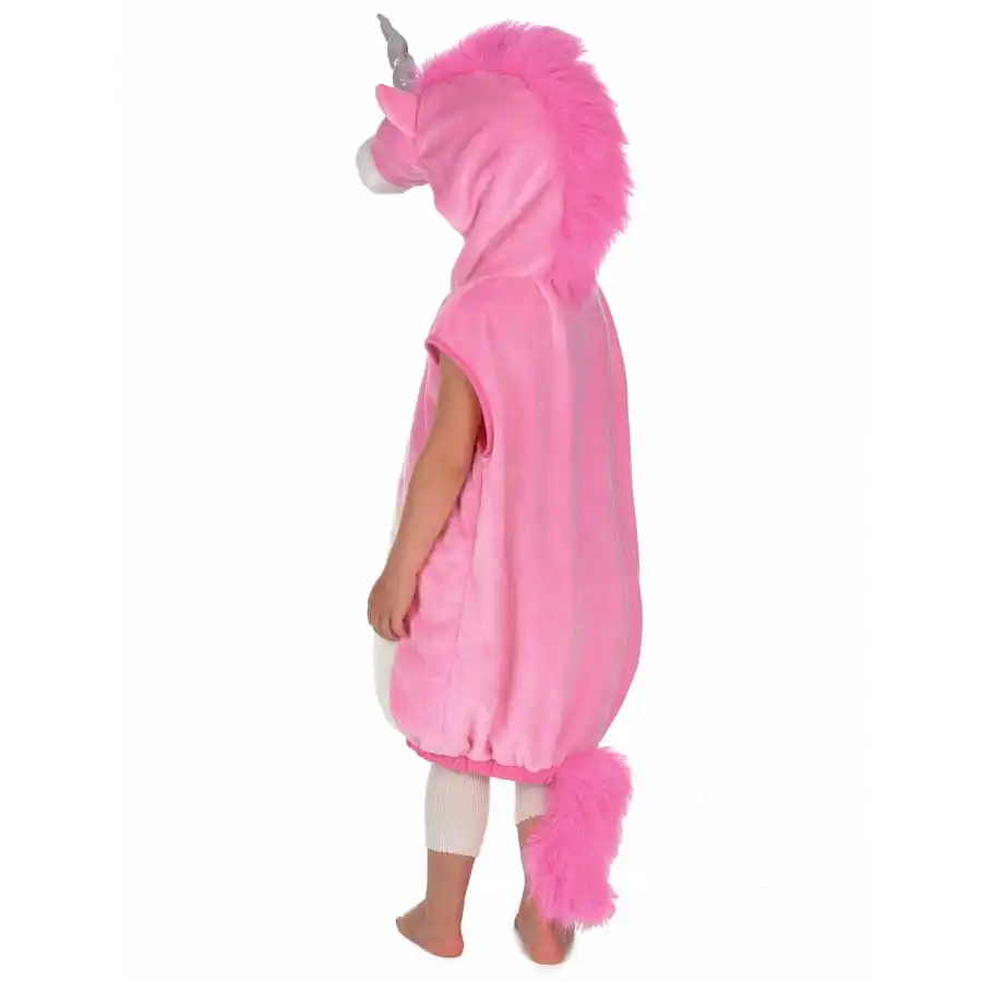 Le déguisement de licorne rose pour enfant est une combinaison à capuche sans manches.