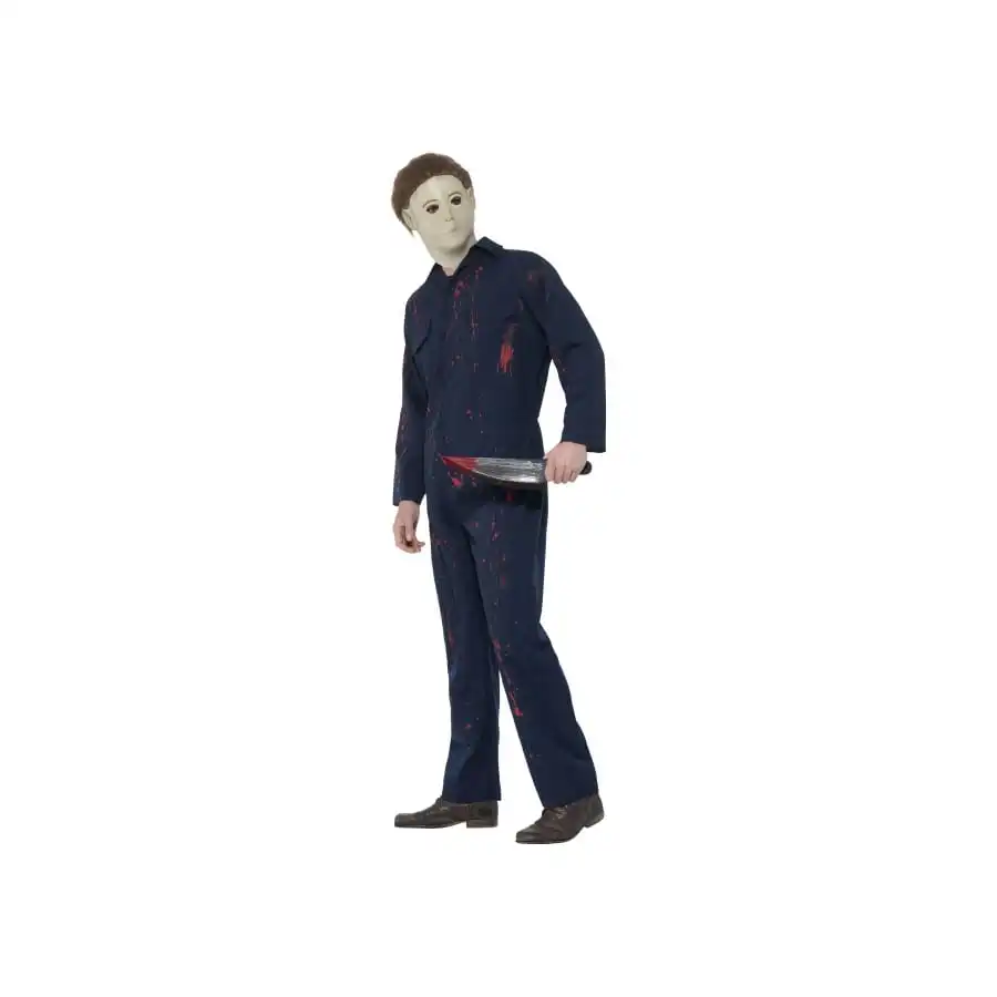 Michael Myers est de retour pour un Halloween en folie… Meurtrier de nature, ce personnage intrigant est celui qui va faire de l’effet lors de vos soirées entre amis. Le déguisement de Michael Myers, Halloween est disponible pour tous les amateurs de sensations fortes. La fameuse combinaison de garagiste ne manque pas à l’appel dans ce costume sous licence Michael Myers. De couleur bleue et tachetée de sang, elle est dotée de longues manches, d’un col V et de deux poches à l’avant. Cet ensemble est complété par le masque du tueur, en latex, qui recouvre entièrement le visage. Le gros couteau ensanglanté est fourni pour vous servir d’accessoire. Créez maintenant votre propre scénario de film Halloween !