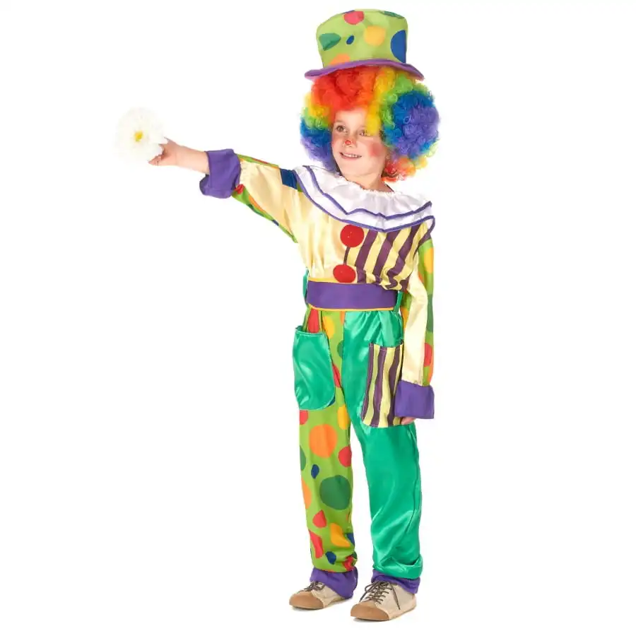 Votre enfant sera fier d’arborer ce déguisement de petit clown multicolore à motifs.
