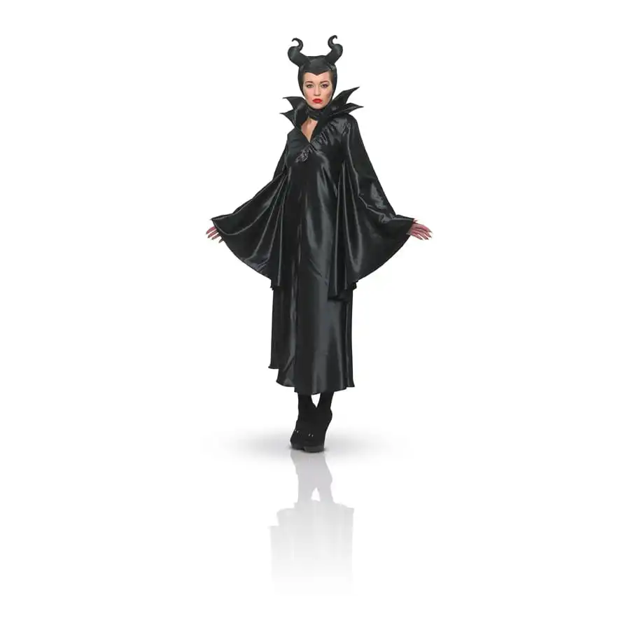 Qui ne connait pas la Belle au Bois Dormant ? Le parfait déguisement digne d’Halloween est celui de la méchante sorcière Maléfique de ce fantastique conte de fée. Vous pouvez mettre de l’ambiance dans votre fête en entraînant vos amis dans le monde de la Magie et de la Sorcellerie où diables, diablesses, magiciens et magiciennes seront mis en avant. Grâce à cette robe noire en tissu satiné à manches chauve souris, avec un col attaché et droit décoré de pointes en mousse rigide. L’ensemble est accompagné d’une coiffe qui s’attache sous le menton grâce à un scratch, redonnez une version futuriste à votre histoire et abracadabra ! C’est comme au cinéma avec une touche d’élégance. C’est sûr, vous allez faire peur à tout le monde tout en étant la star. Notre modèle est signé Disney et est disponible en taille M et S.