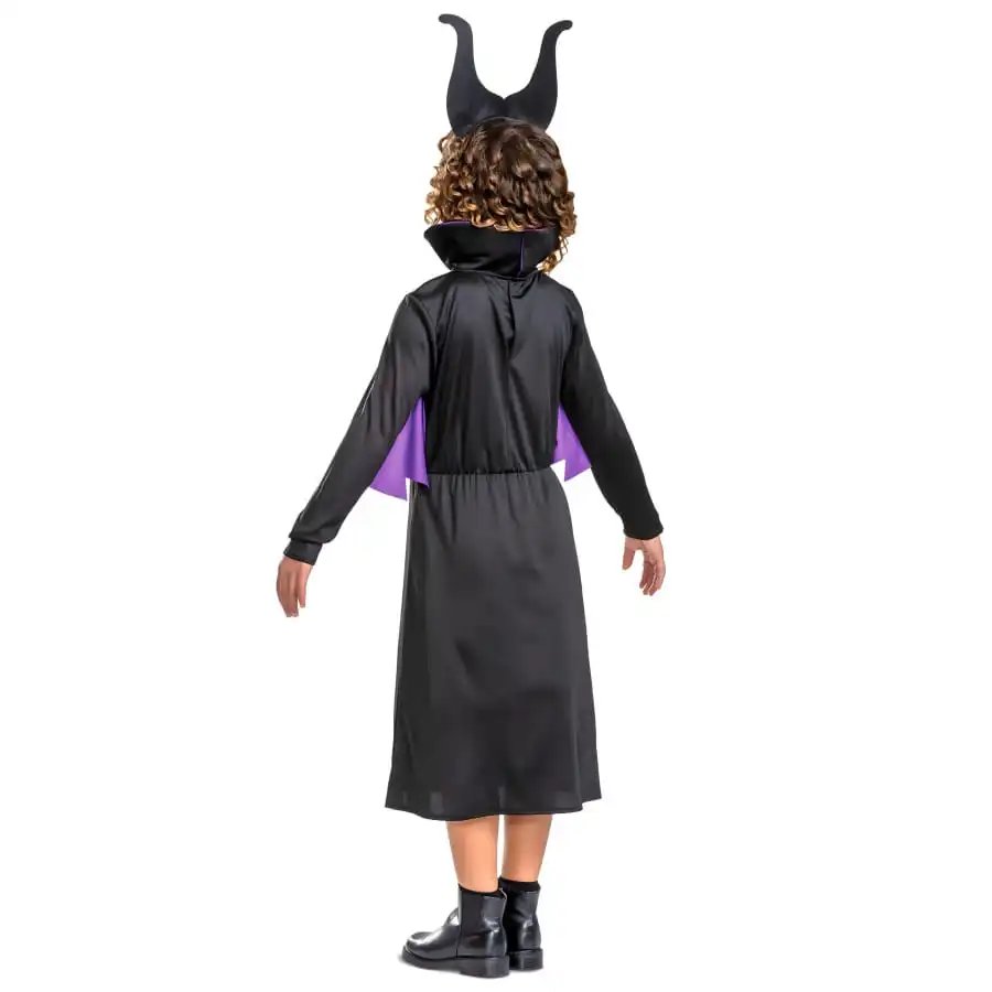 Le déguisement est constitué d’une robe noire avec un haut violet, orné de petites ailes violettes dentelées sous les bras, ce qui rappelle le personnage emblématique de Disney.