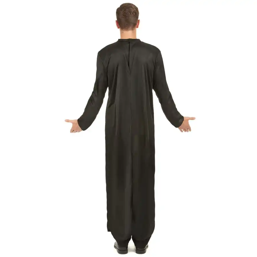 Avant de passer devant le vrai curé à l’église, le futur marié va passer une soirée mémorable en compagnie de ses meilleurs amis. Surprenez-le en enfilant ce déguisement noir et blanc de curé. L’ambiance sera aux fous rires avec un faux religieux qui anime la soirée. Il portera tout simplement une longue robe noire à col blanc. Les manches sont longues et vous distinguerez une petite croix dessinée sur le devant. Le vêtement est ample et agréable à porter, et il donnera un air ultra sérieux à son heureux bénéficiaire. Vous n’aurez plus besoin d’autres artifices pour rendre le costume plus réaliste. Préparez d’ores et déjà vos blagues sur les religieux !
