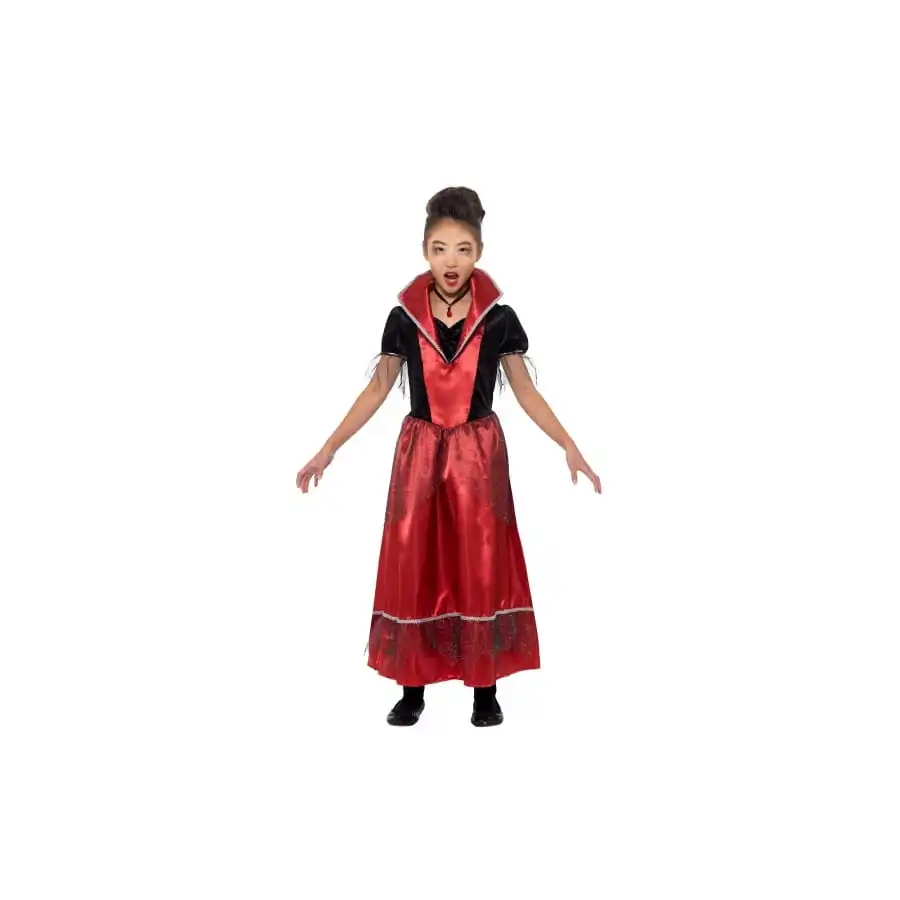 Afin de faire partie de ces êtres surnaturels, nous proposons le déguisement rouge de petite princesse vampire qui est muni d’un col aussi large que les épaules et qui descend jusqu’aux chevilles.