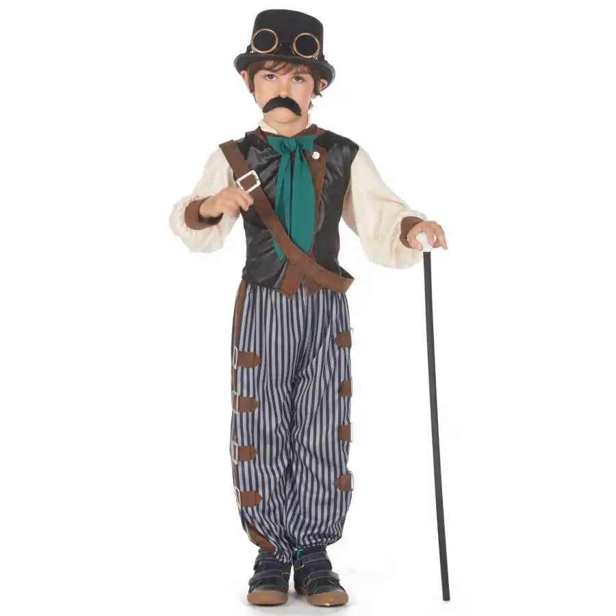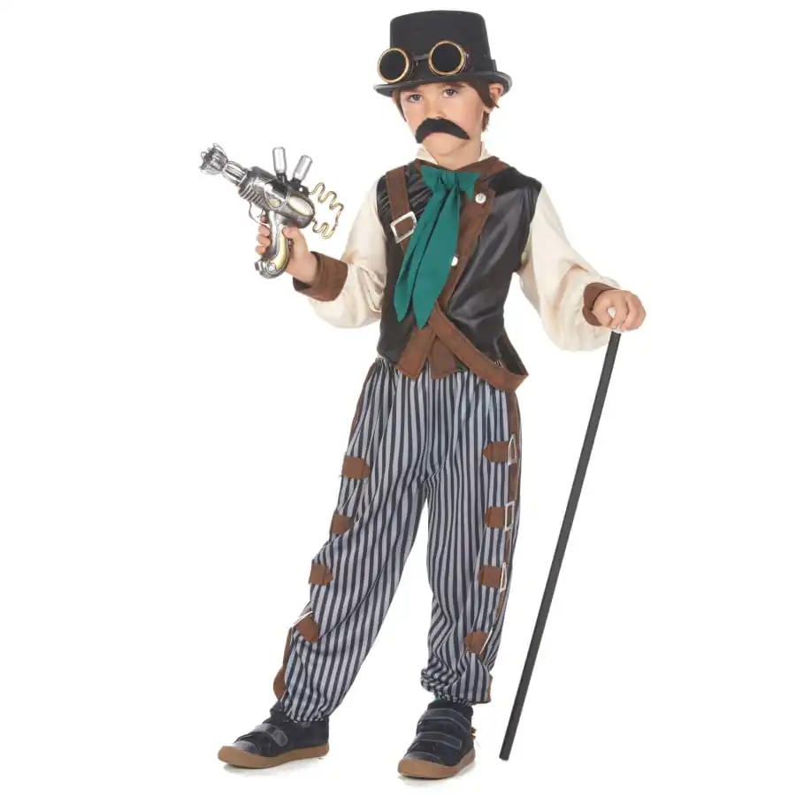 Pour votre prochaine soirée costumée, transformez votre garçon en un personnage futuriste des plus élégants, grâce au déguisement steampunk pour enfant, pantalon ligné.