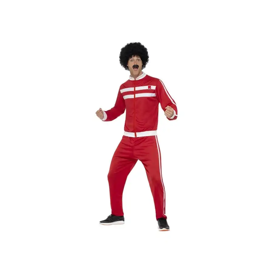 Ce genre de tenue était très en vogue dans les années 70 et 80, surtout pour les sportifs alors si vous êtes un sportif et que vous allez à une fête à thème rétro, mettez ce déguisement survet rouge old school, qui vous ira à merveille. De plus, il est tout simple avec sa veste de couleur rouge avec une encolure blanche, deux bandes blanches au niveau de la poitrine et sur les manches. Le pantalon est bien évidemment fait avec le même tissu rouge, avec des bandes blanches sur les côtés. Vous pourrez rajouter, Messieurs, une perruque ou d’autres accessoires, qui affirmeront encore plus le personnage que vous incarnerez.