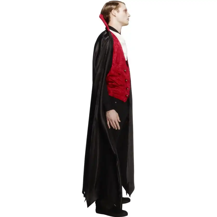 Ce costume de vampire est parfait pour une soirée halloween , vous serez un le plus incroyable des vampires pour une fête sur le thème horreur. Il est composé d’un veston, d’une cape noir avec col rouge ainsi que d’une cravate.