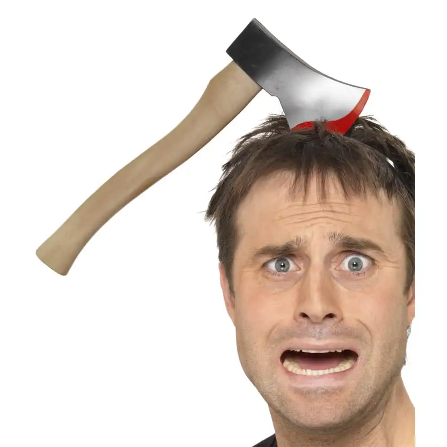 Vous pourrez jouer au mort-vivant avec cette hache ensanglantée plantée dans votre tête. Cet accessoire vous fera passer pour un fou ou pour un zombie lors de vos soirées d’Halloween.