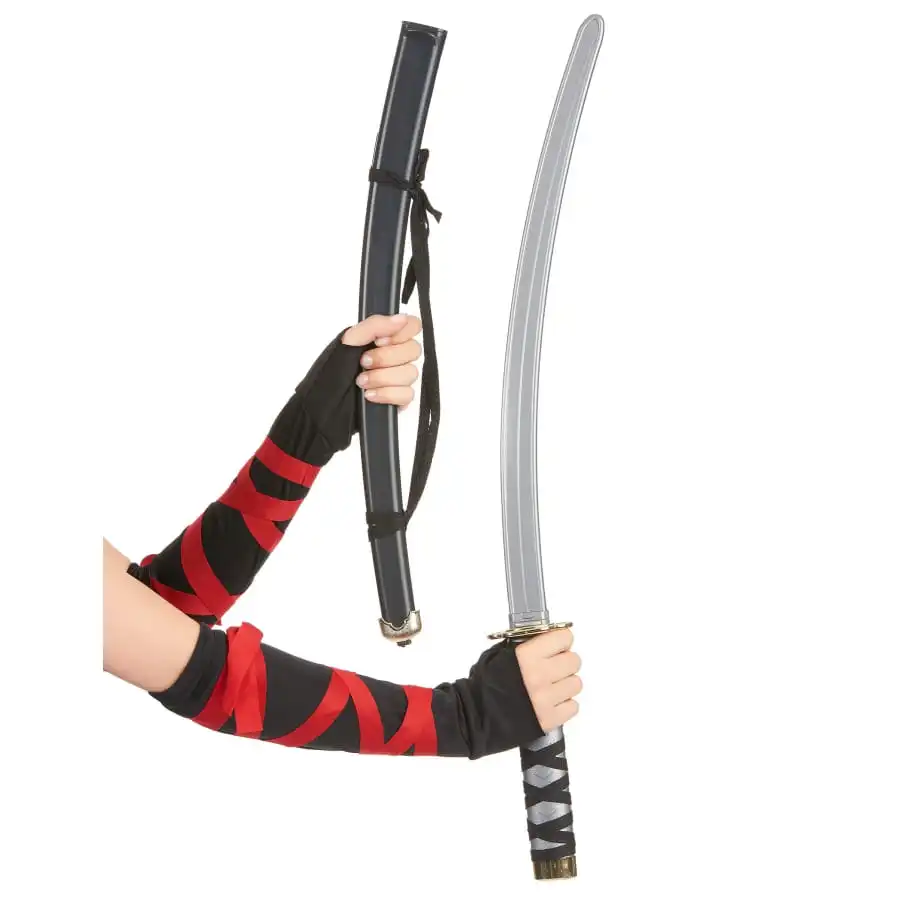 Les ninjas sont très forts en arts martiaux et ils manient parfaitement les armes. Héritez d’un magnifique sabre de ninja à travers ce katana en plastique avec étui, 70 cm. Le katana est fourni avec un étui de couleur noire équipé d’une lanière qui vous permettra de fixer l’arme à votre ceinture.
