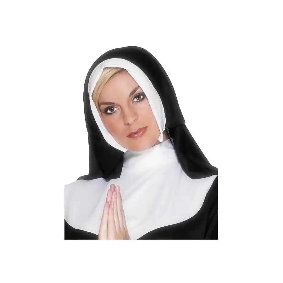 Kit de nonne, pour femme ou adolescente, composé d’un col blanc et d’une coiffe blanche et noire. Cet ensemble recouvrira parfaitement vos cheveux et vous donneront un aspect innocent et religieux.