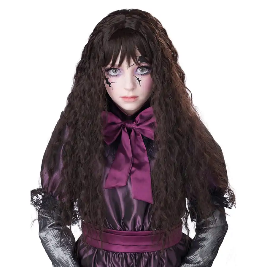 Laissez votre enfant vous surprendre en changeant de tête à l’occasion d’une fête costumée, grâce à la longue perruque brune ondulée pour enfant.