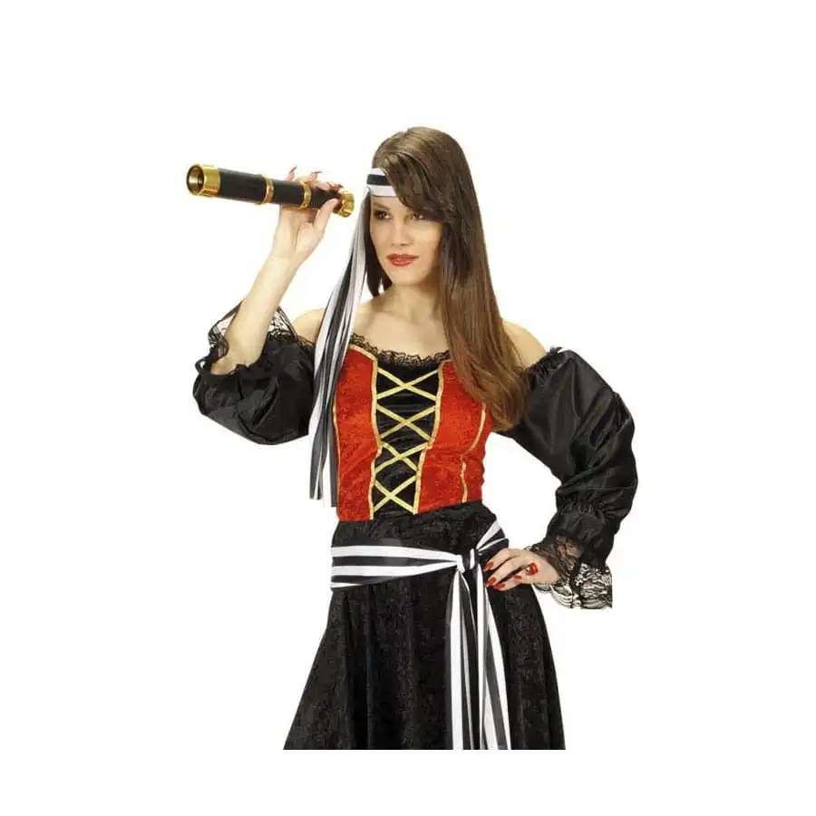 Pour que votre déguisement du Capitaine Crochet soit parfait, optez pour un outil indispensable : la longue vue noire et dorée de 32cm.