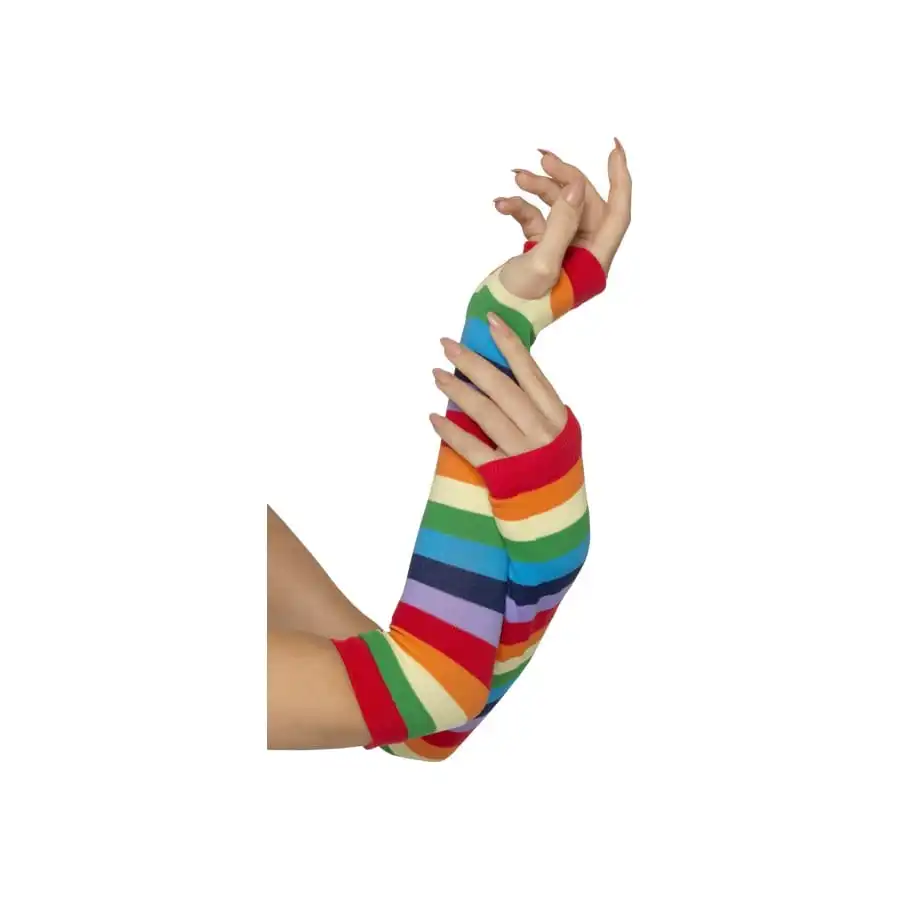 Les rayures et les couleurs se sont données rendez-vous dans un même accessoire. Adoptez ces longues mitaines rayées multicolores pour le carnaval. Il s’agit d’un modèle de mitaine qui couvre entièrement l’avant-bras. Cette paire de mitaines à rayures colorées et horizontales peut s’accorder avec divers styles, en passant par le look hippie, le thème sport ou même le look de danseuse.