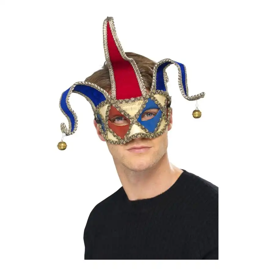 Le Fou du Roi est un personnage très connu à travers le monde entier. Véritable personnage comique, il a pour mission de faire rire les gens. Avec ce masque Loup Vénitien Fou du Roi pour homme, soyez certains d’épater toute la galerie. Idéal pour les fêtes à thèmes, comme Venise ou alors Autour du Monde, ce masque fera de vous un bouffon tout à fait authentique ! Ce demi-masque arbore les couleurs rouges, bleus, or et bronze.