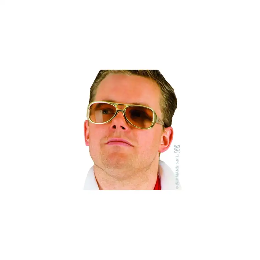 Paire de lunettes Elvis Presley de couleur or avec protection UV400. Ces lunettes feront de vous le King de la soirée.
