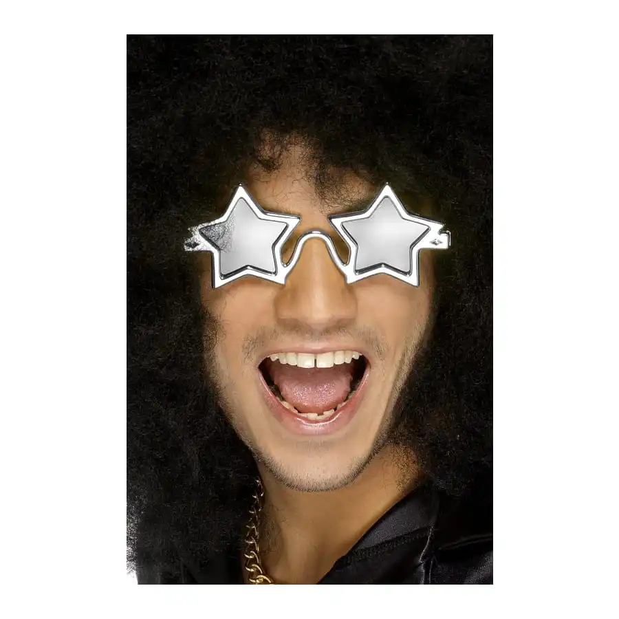 Paire de lunettes en forme d’étoiles argentées, pour homme, femme, adolescent ou adolescente. Complétez votre tenue disco avec cette paire de lunettes excentrique!