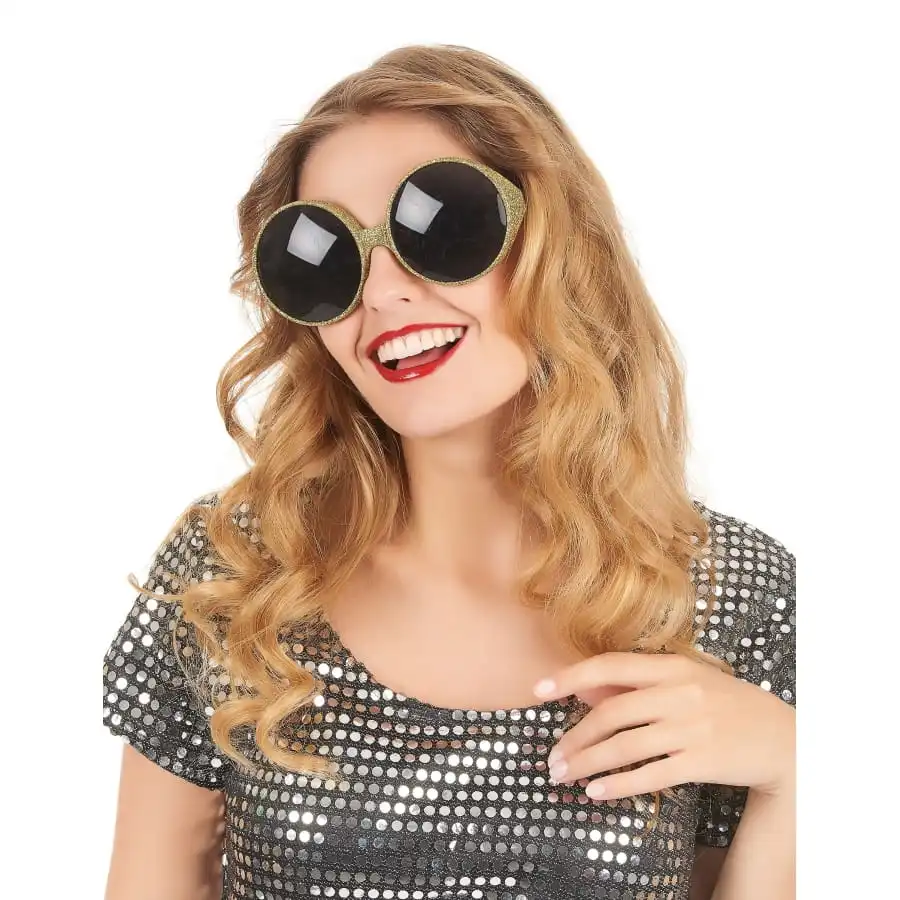 Paire de Lunettes rondes dorées pailletées.