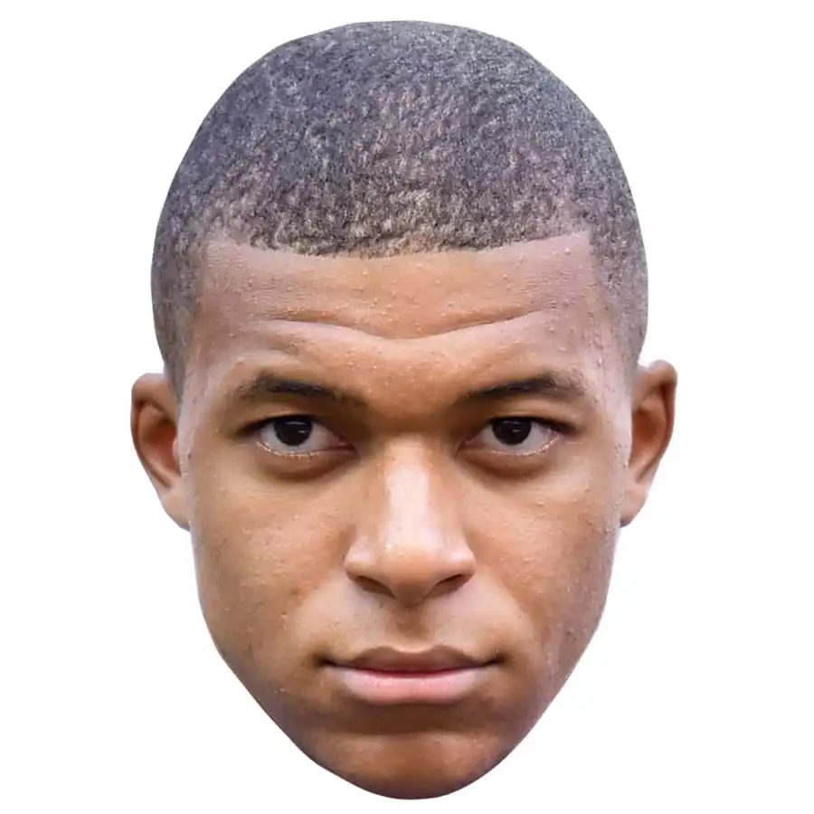 Apportez un soutien inconditionnel à votre star préférée, avec le masque de Kylian Mbappé en carton plat.