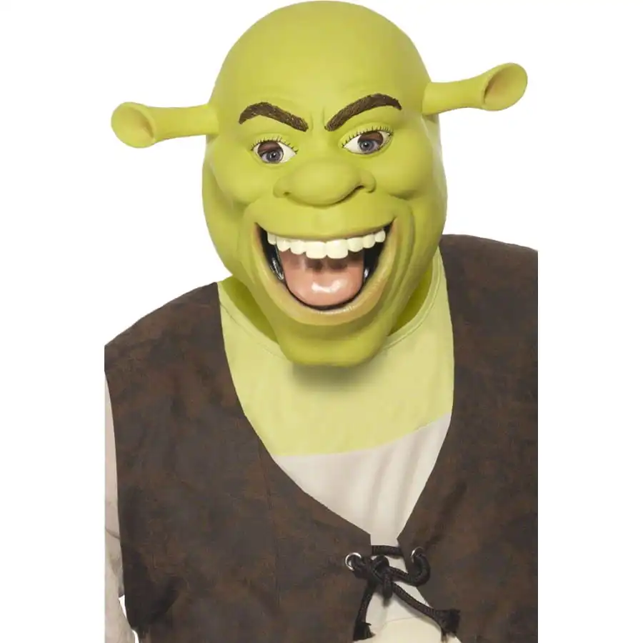 Masque pour homme ou adolescent sous licence en forme du visage de Shrek, l’ogre vert. Cet accessoire vous permettra de vous déguiser en abominable ogre pour une soirée basée sur le thème des dessins animés.