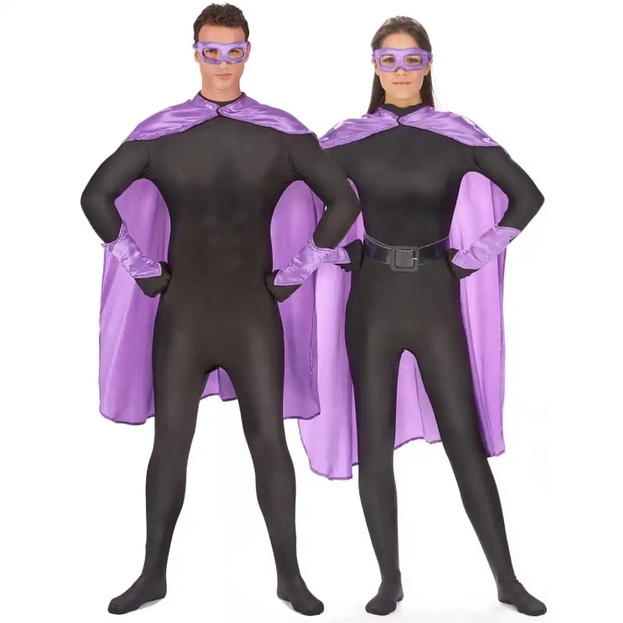 Changez-vous en super-héros des temps modernes en enfilant ce masque, manchettes et cape violette pour homme.