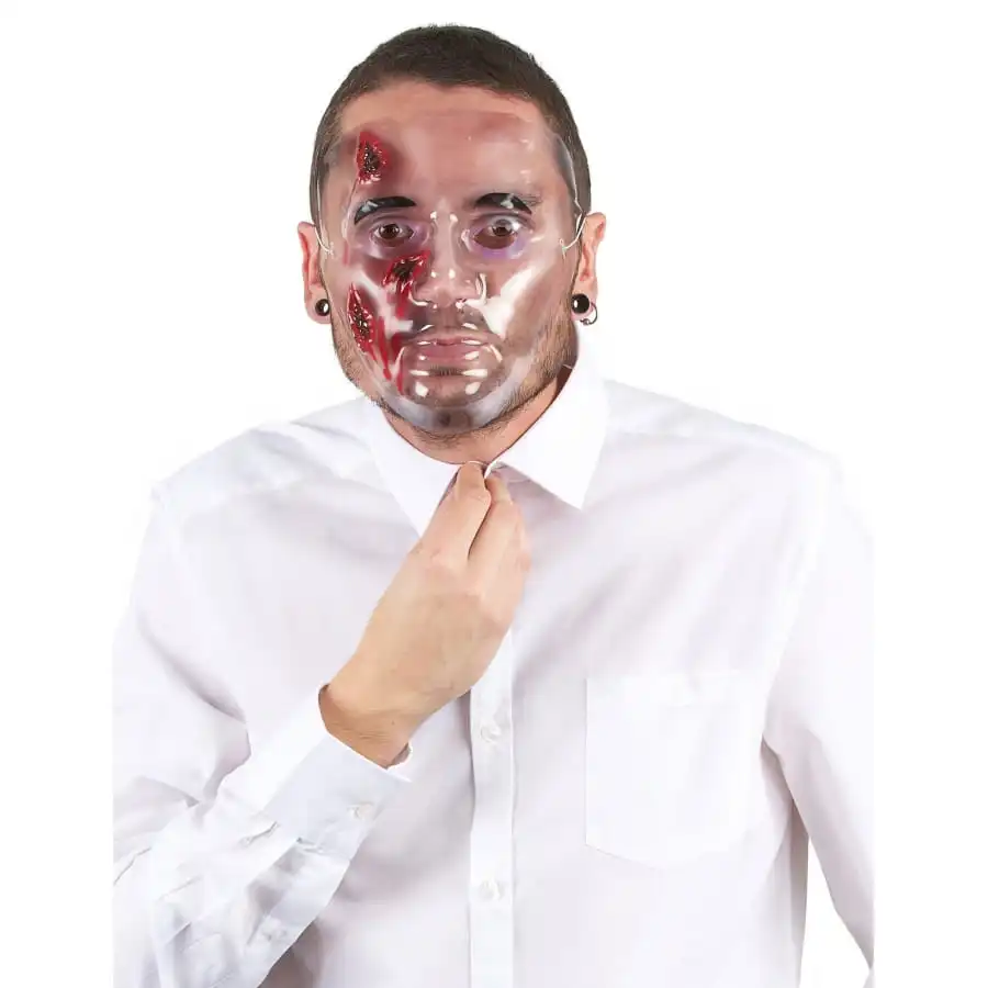 Le masque transparent avec blessures en sang pour adulte est en plastique.