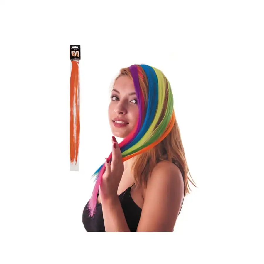 Nous vous présentons une palette de 6 couleurs différentes (au choix) : rose, orange, jaune, violet, bleu et blond.
