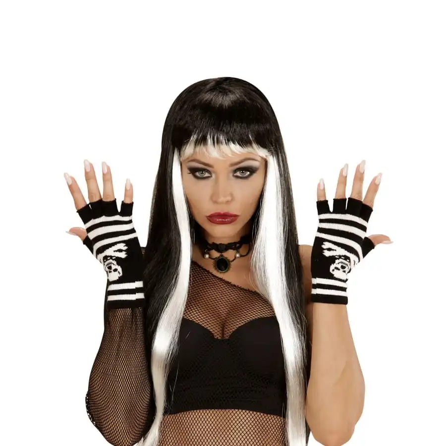 De 28 cm de long, ces mitaines noires et blanches imprimé pirate sont des accessoires pour adulte.
