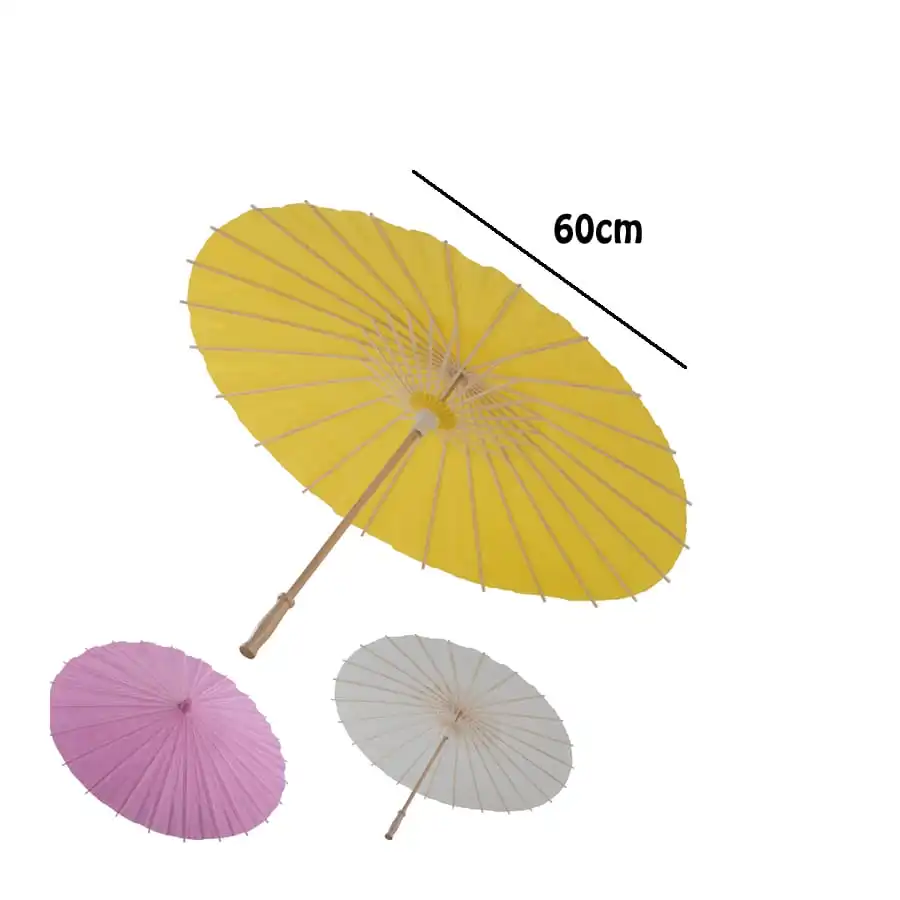 L’ombrelle style japonais de 60 cm est en papier et en bois.