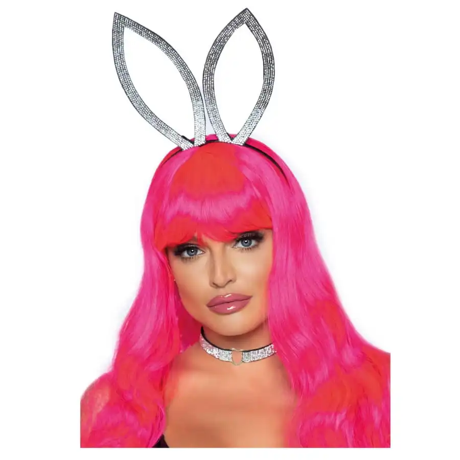 Changez-vous petit lapin coquin le temps d’une soirée de la Saint Valentin, avec les oreilles et collier lapin en strass argentés.