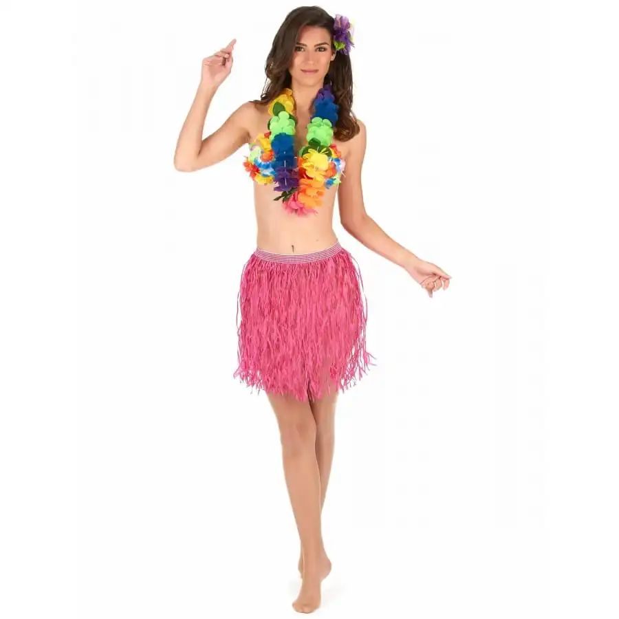 Le pagne court rose pour femme est une jupe à taille élastique rose constituée de tiges de papier torsadées.