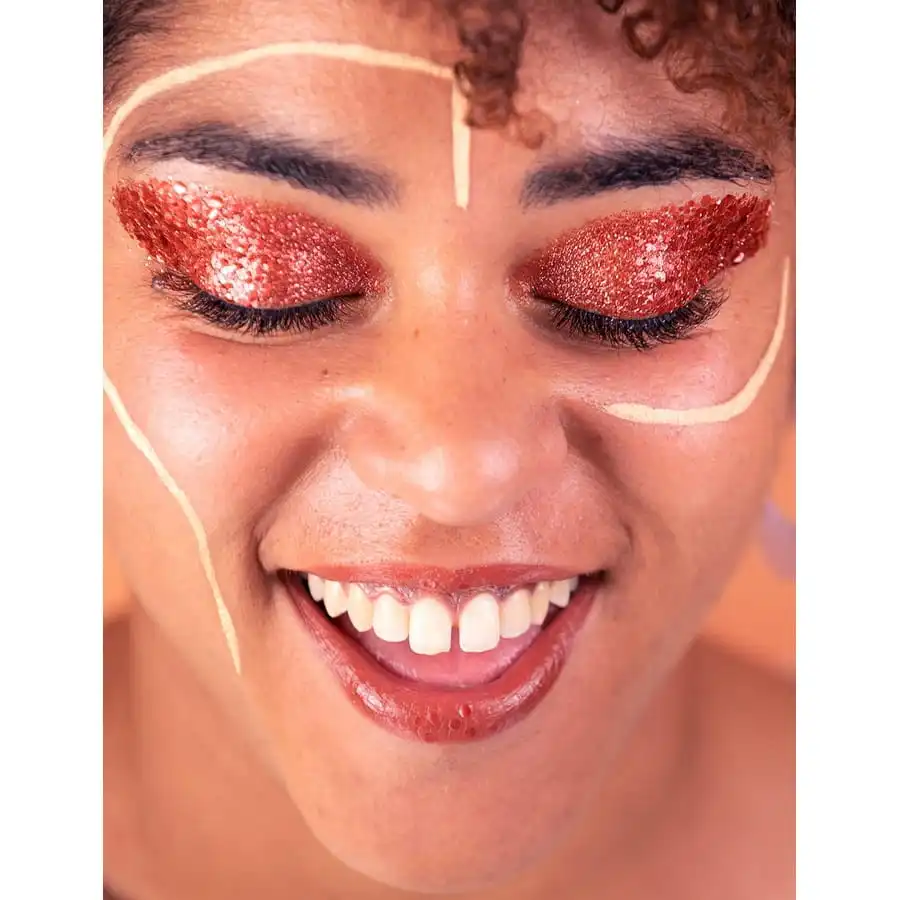 Sentez monter la ferveur des années disco avec les paillettes brique pour visage, biodégradables.