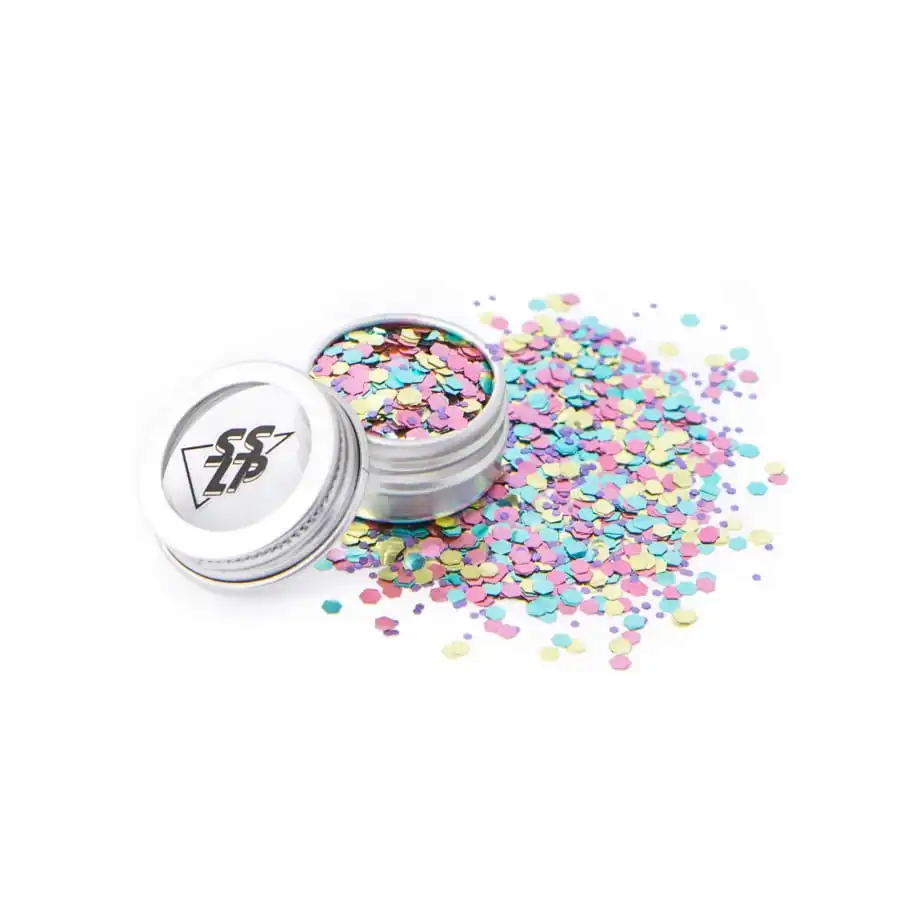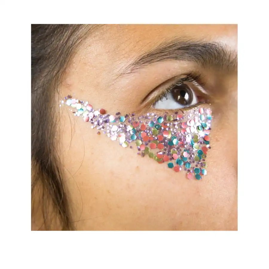 Ces paillettes entièrement biodégradables et 100% sans matière plastique sont conçues pour être positionnées sur le visage, les ongles, les cheveux et le corps.