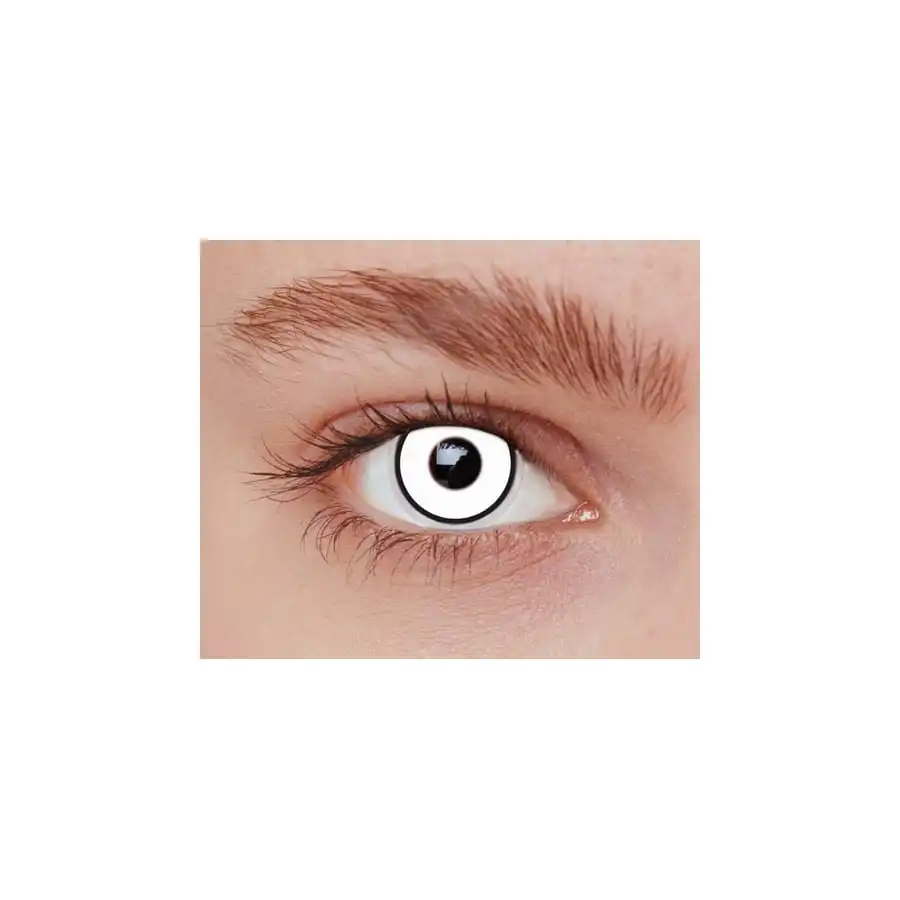 Inspirez la peur et la terreur d’un simple regard, avec cette paire de lentilles blanches contour noir.