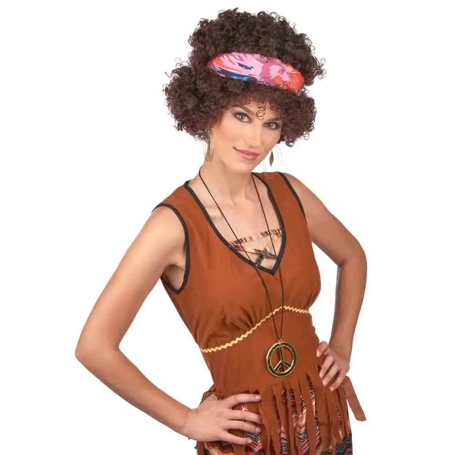 Complétez votre déguisement de hippie grâce à cette Perruque brune frisée afro style hippie.