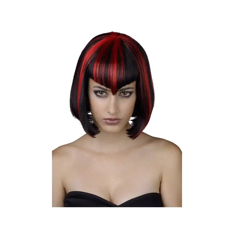 Perruque Carré Noir Et Rouge, Frange En Pointe