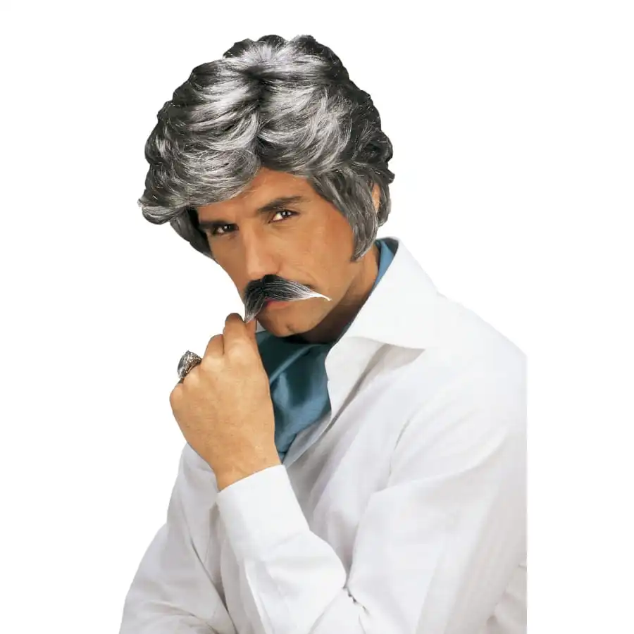 Perruque De Vieux Play Boy Avec Moustaches Grises