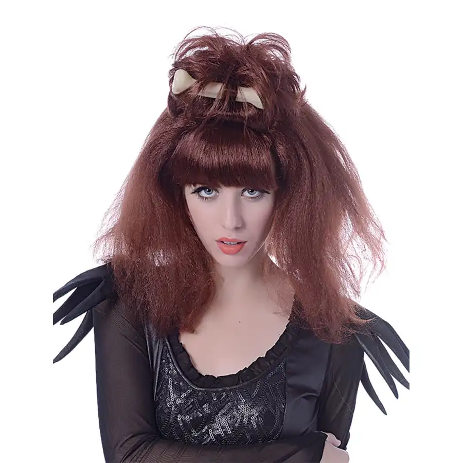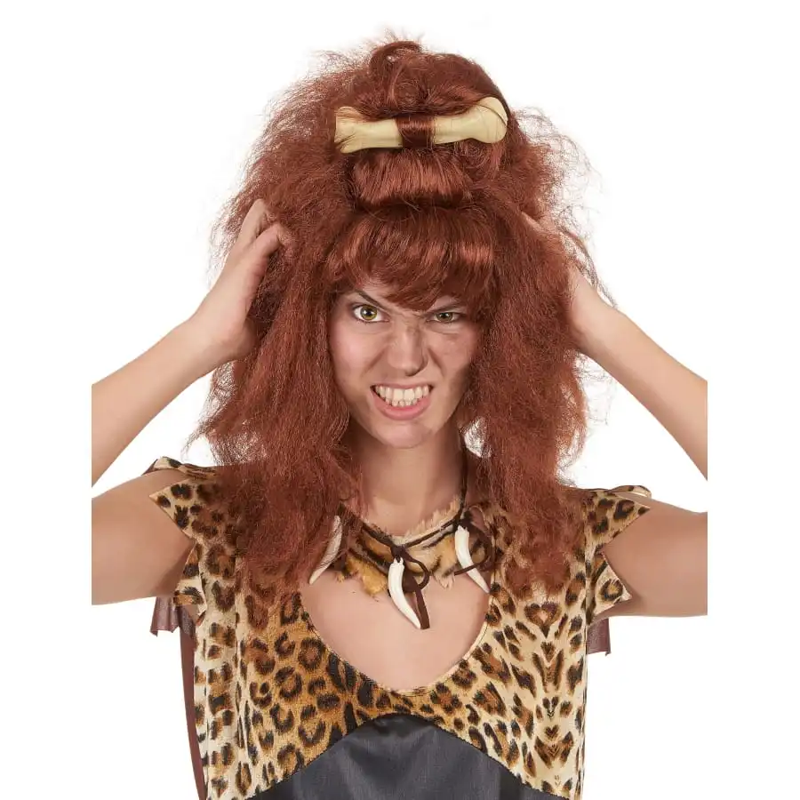 Nous parlons de la perruque marron femme des cavernes avec os.