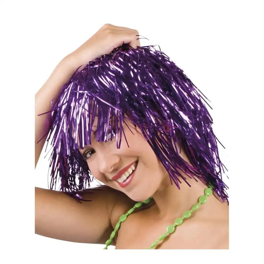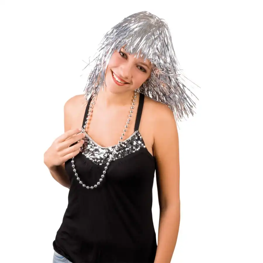 Mesdames, réveillez la disco girl qui sommeille en vous à l’aide d’une perruque qui a du punch ! Adoptez une coiffure originale en vous munissant d’une perruque métallisée. Avec des cheveux courts, des franges, et surtout des couleurs qui brillent de mille feux, cette perruque va faire de vous une véritable star. Ce modèle est disponible en trois couleurs : bleu, multicolore ou or.
