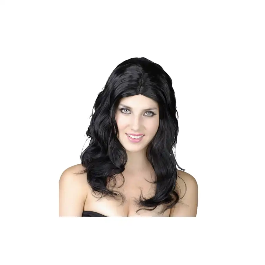 Perruque Noire Ondulée Avec Raie Centrale