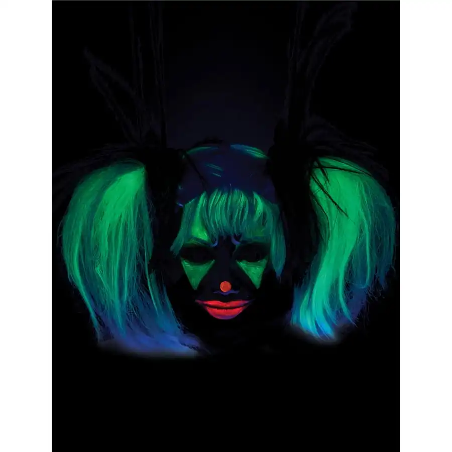 Profitez d’Halloween pour offrir du bon temps à votre fille, grâce la perruque phosphorescente avec couettes pour enfant.