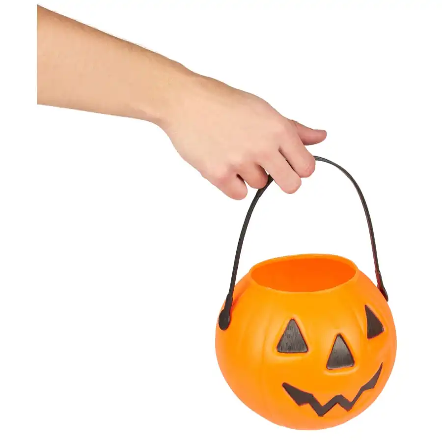 A l’occasion de la fête des morts, prévoyez un accessoire adapté à ce thème. Pour ce faire, nous vous proposons le petit Seau citrouille à bonbons, qui reste disponible sur notre site. Se composant uniquement de plastique, il est de forme arrondie avec une ouverture sur le dessus. De couleur orange, en général, ses détails, ont été dessinés en noir. L’anse qui permet de le maintenir est également de couleur noire.