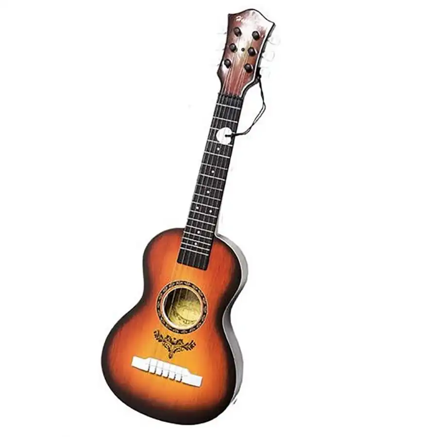 C’est une guitare de couleur marron qui peut faire de la musique.