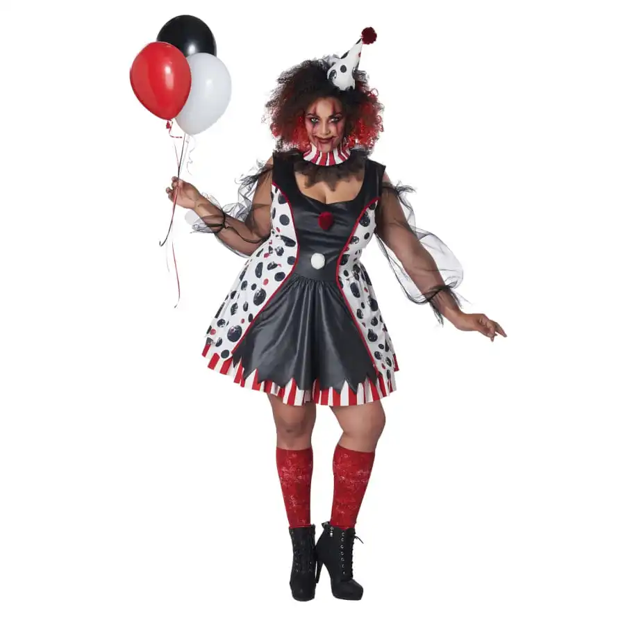 Soyez toute aussi sexy que déjantée dans cette Robe de clown sinistre avec manches en voile.