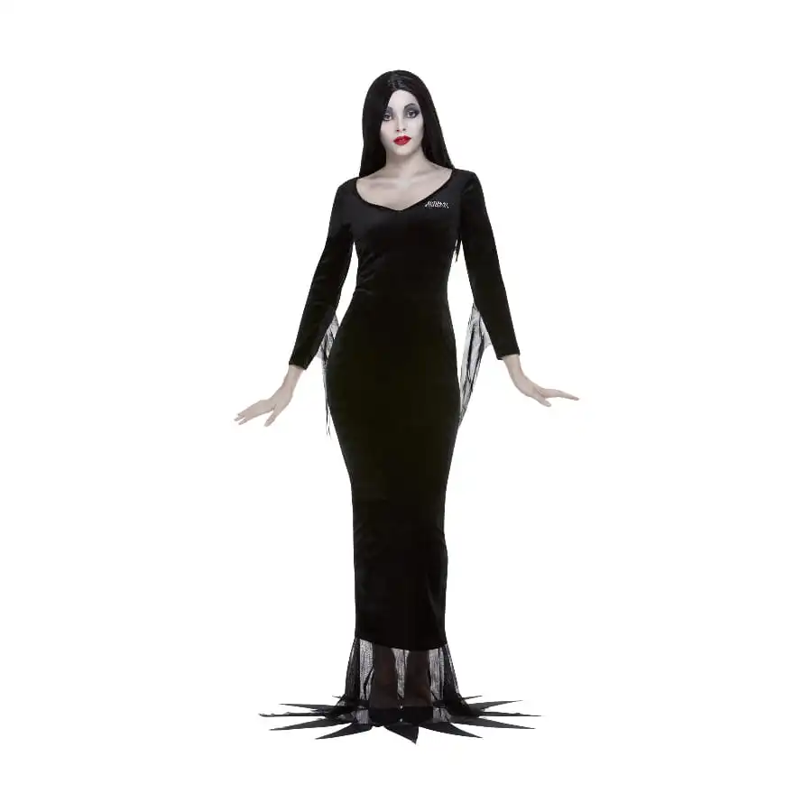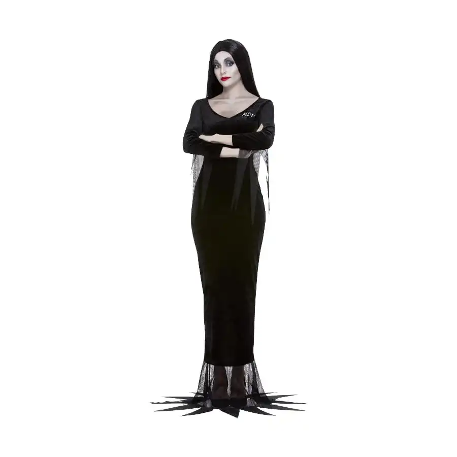 Révélez votre beauté fatale, en arborant cette robe de Morticia Addams avec perruque, pour femme.