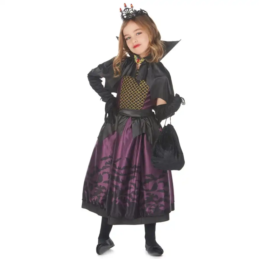 Changez votre enfant en comtesse des ténèbres, avec la robe de petite vampire noire et violette.
