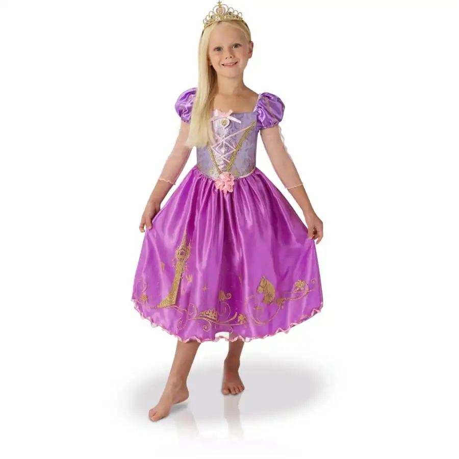 Changez votre fille en une princesse de contes de fée, en lui offrant cette robe de Princesse Raiponce avec tiare pour enfant.