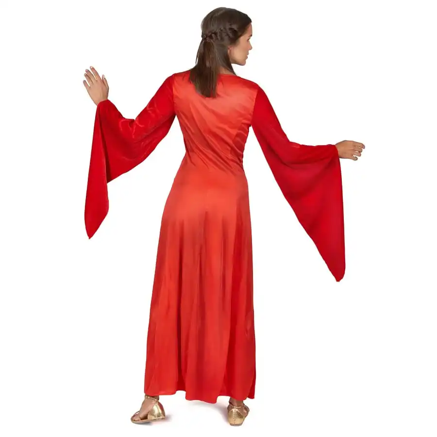 La robe longue rouge style médiéval pour pour adulte est destinée aux femmes.