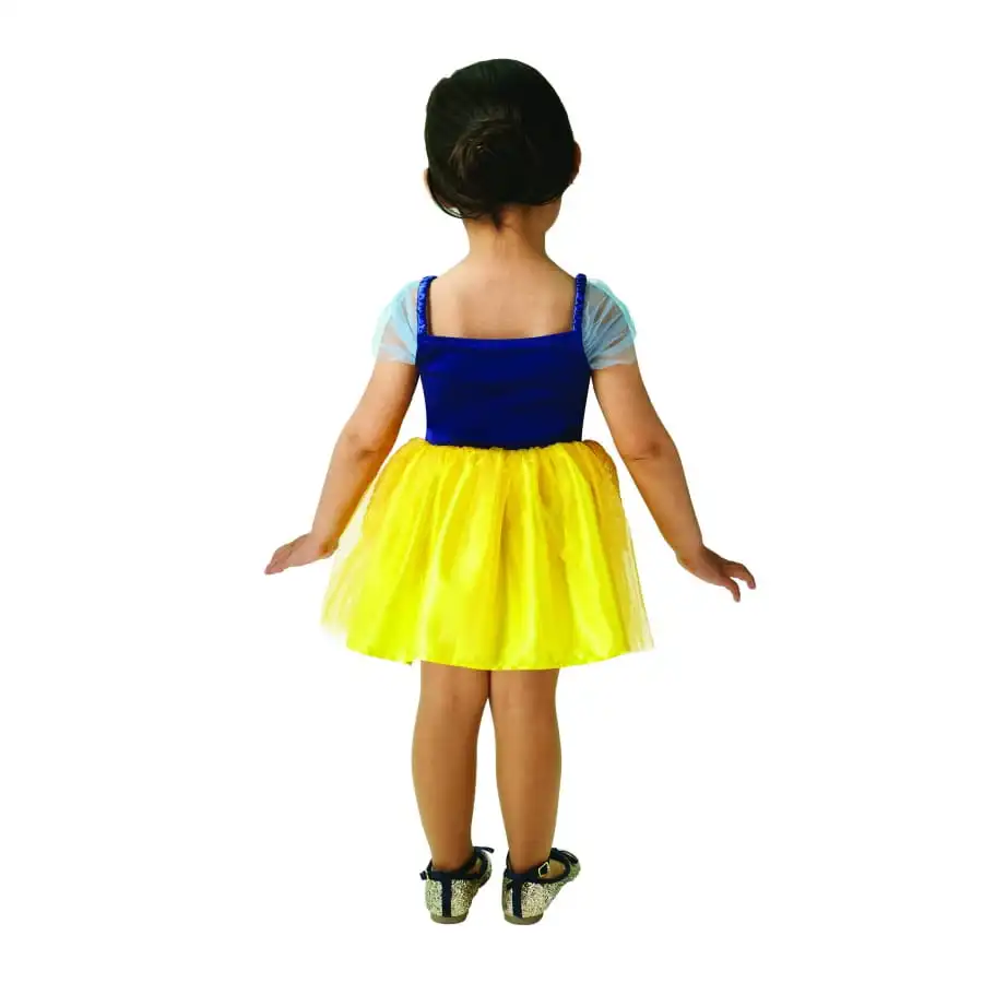 La robe tutu de Blanche Neige pour fille est destinée aux enfants de 3 à 6 ans car elle est vendue en taille unique.