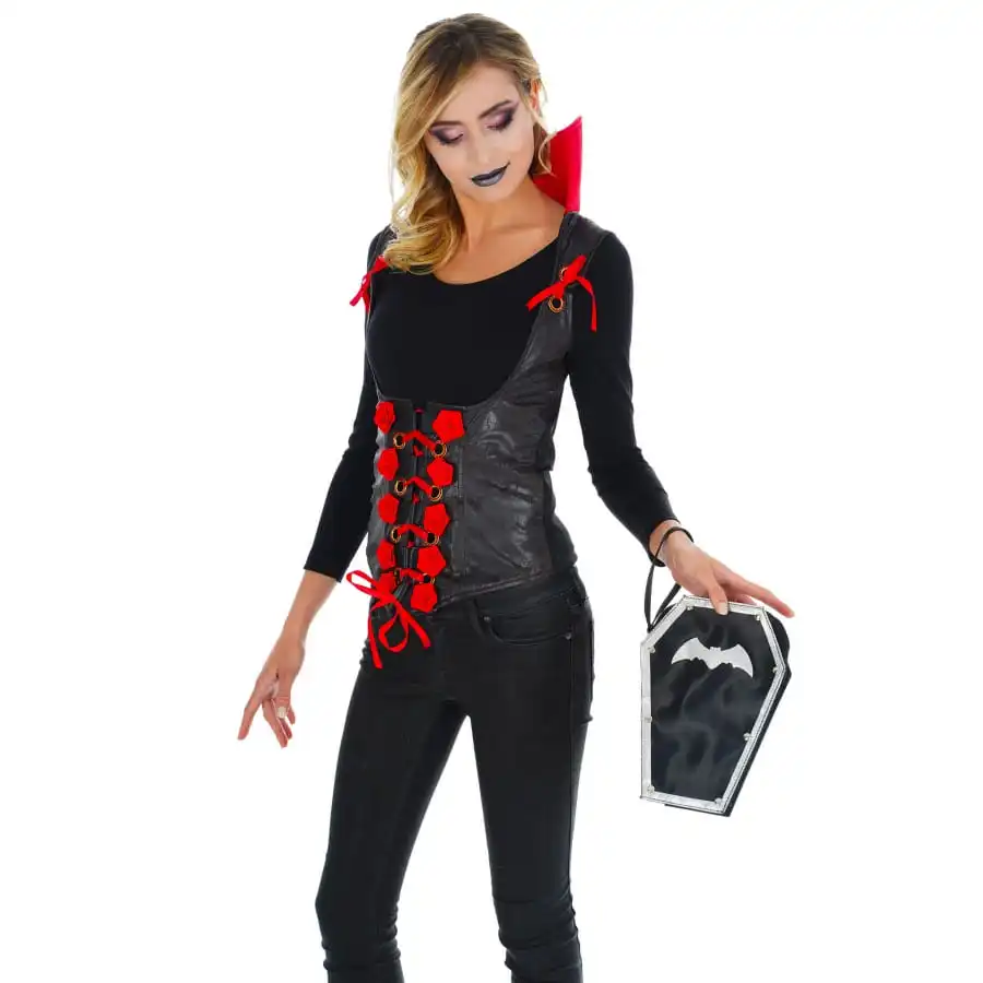 On peut difficilement faire mieux que le sac à main en forme de cercueil pour compléter une tenue de vampire.