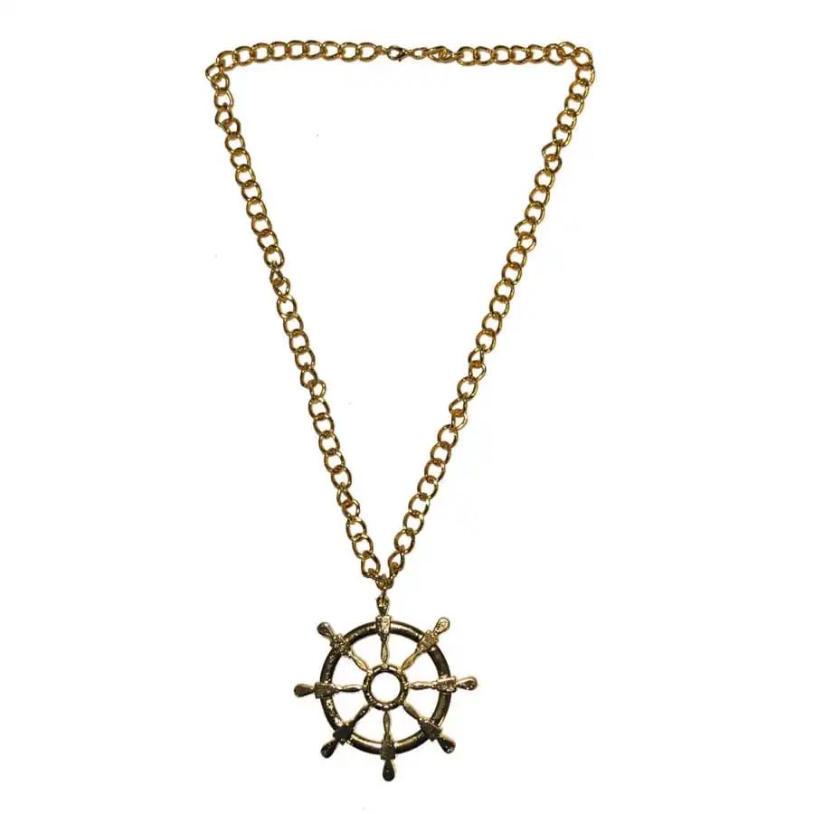 Il n’y a rien de mieux pour accessoiriser votre déguisement de femme marin que ce sautoir doré avec pendentif gouvernail pour adulte.