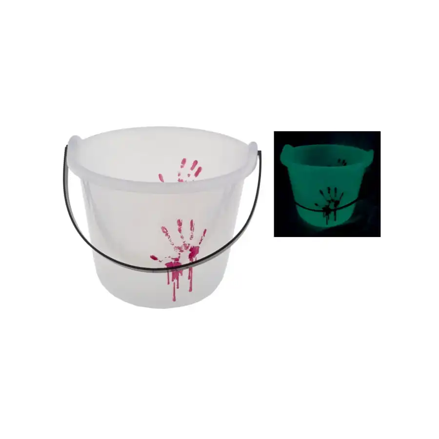 Rien de mieux que ce Seau phosphorescent avec traces de sang pour partir à la collecte de bonbons le soir d’Halloween.